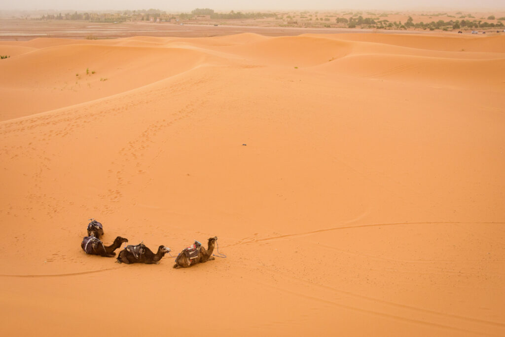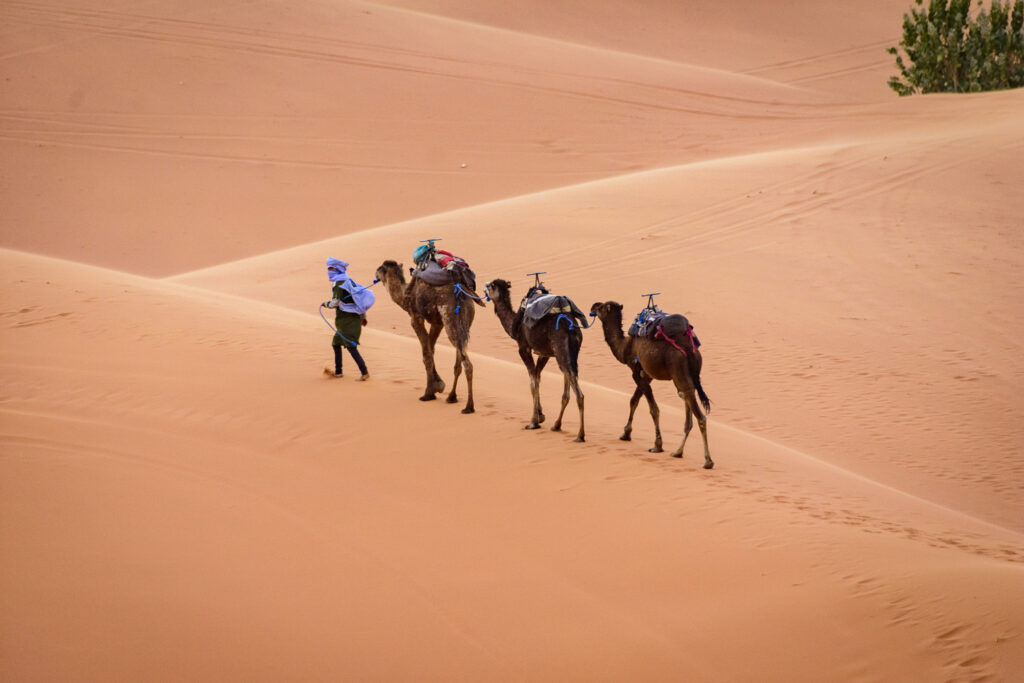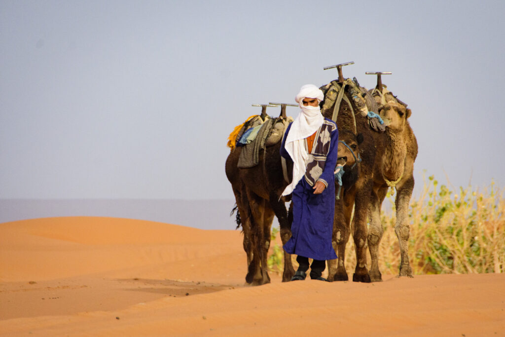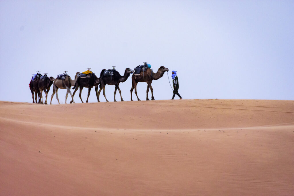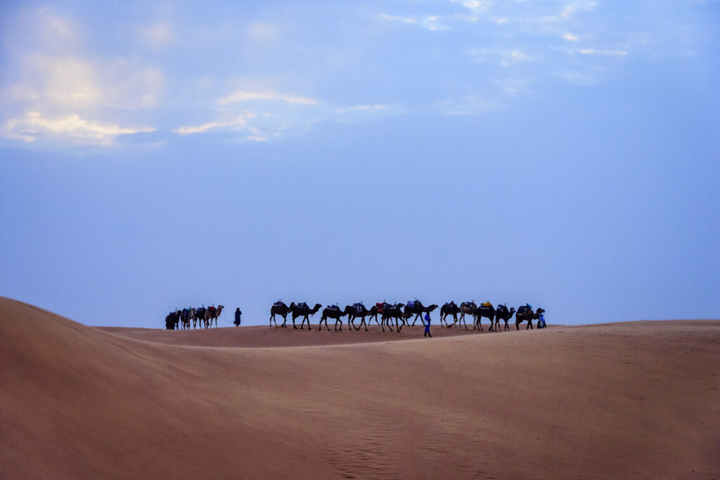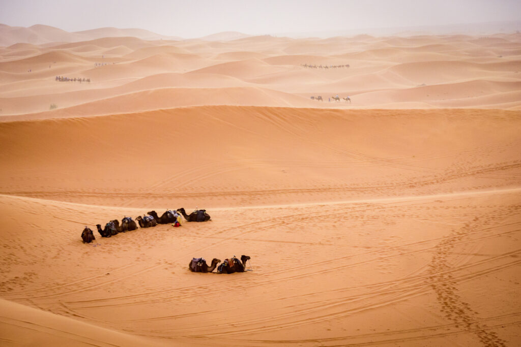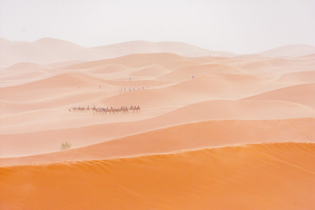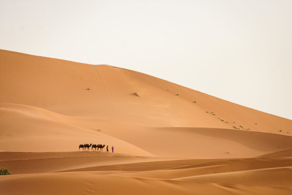 El desierto de Merzouga es una sinfonía de luz y vacío donde la fotografía trasciende la imagen y se convierte en experiencia. Las dunas de Erg Chebbi, esculpidas por el viento, mutan con el sol en un juego de sombras infinitas. Cada amanecer tiñe la arena de oro, y cada atardecer la cubre de fuego silencioso. En la inmensidad del desierto, se captura el ritmo lento del tiempo, la quietud que habla, y la huella efímera del ser humano sobre la eternidad de la arena.